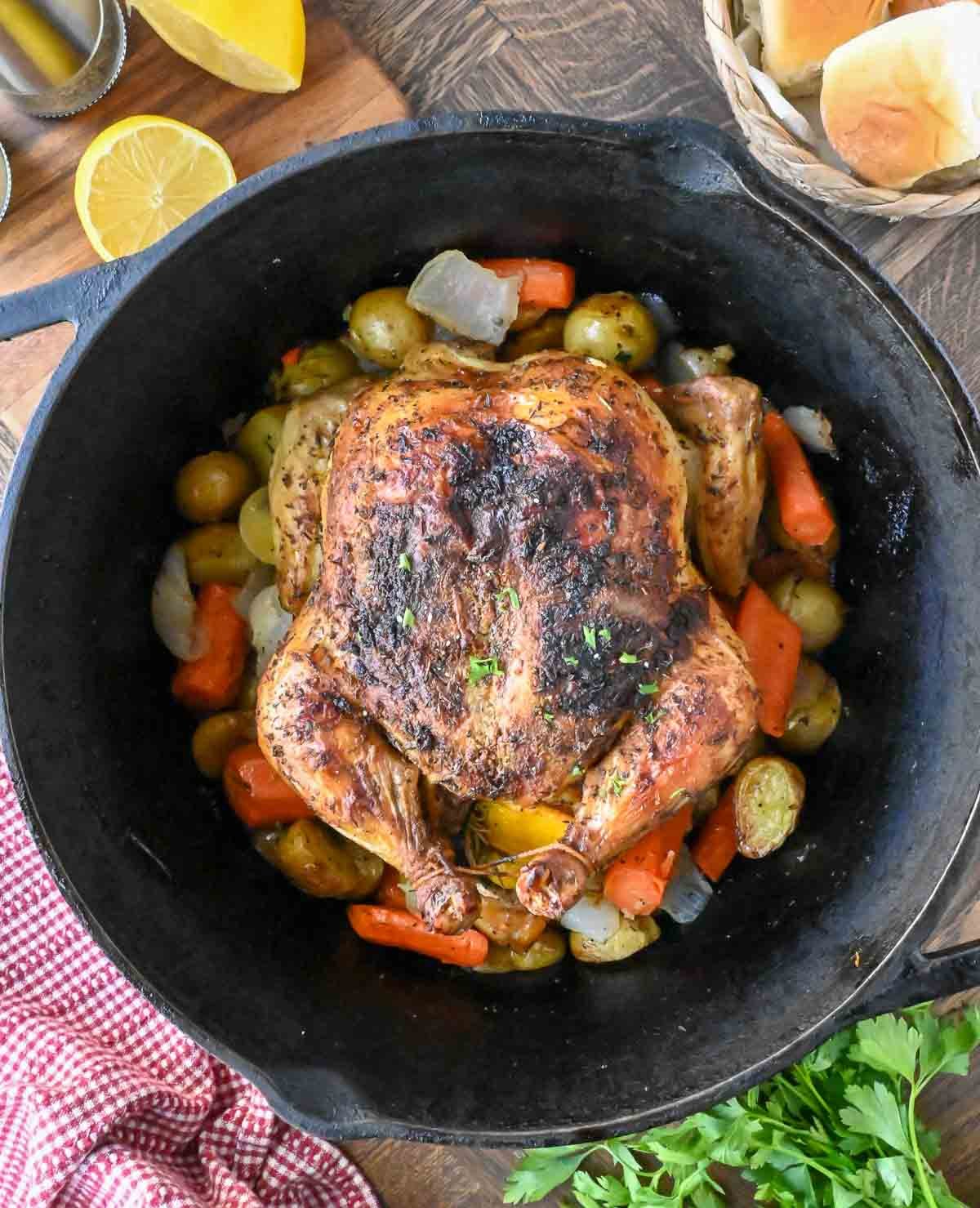 Dutch Oven Roasted Whole Chicken