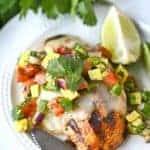 Heat a grill on medium-high heat or a skillet on the stovetop. Grill for 4-5 minutes then flip and divide the cheese up evenly and place on top of each chicken breast and grill until cooked through and 165 degrees. Let rest for 10 minutes before serving.